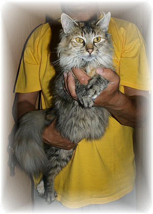 11.10.2008 Wolfsburg ( Heimtiermesse ) Galactica startete in Wolfsburg zusammen mit Mama Cayenne und Oma Aspasia in der Klasse 3 - 6 Monate. Gerichtet wurde sie von Richter Th. Hamann, der ihr eine excelente Bewertung gab. Zu unserer großen Freude bekam sie das Best in Variety und wurde sogar nominiert für Best in Show. Dort stand sie gegen eine große Anzahl Kitten ihres Alters, der verschiedenen Halblanghaarrassen. Dann kam, was wir nicht erwartet hätten, unsere kleine Maus wurde tatsächlich von den Richtern zum Besten Halblanghaarkitten 3 - 6 Monate gewählt! ( Best in Show )