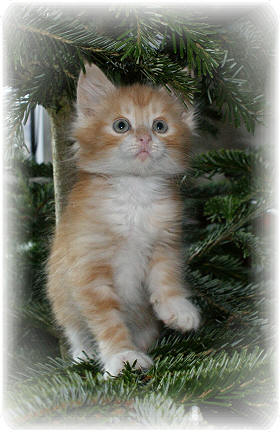 Heute gibt es richtig was zu berichten. Unsere Zweibeiner haben uns einen ganz komischen Kletterbaum ins Wohnzimmer gestellt. Mein Bruder Imperio und ich haben ihn gleich mal ausprobiert, das ist super!!! Ich finde aber auch die vielen Lichter und die goldenen Bälle, die daran hängen interessant. Außerdem haben wir neue Spielsachen bekommen, weil Weihnachten ( keine Ahnung was das sein soll ) ist.
