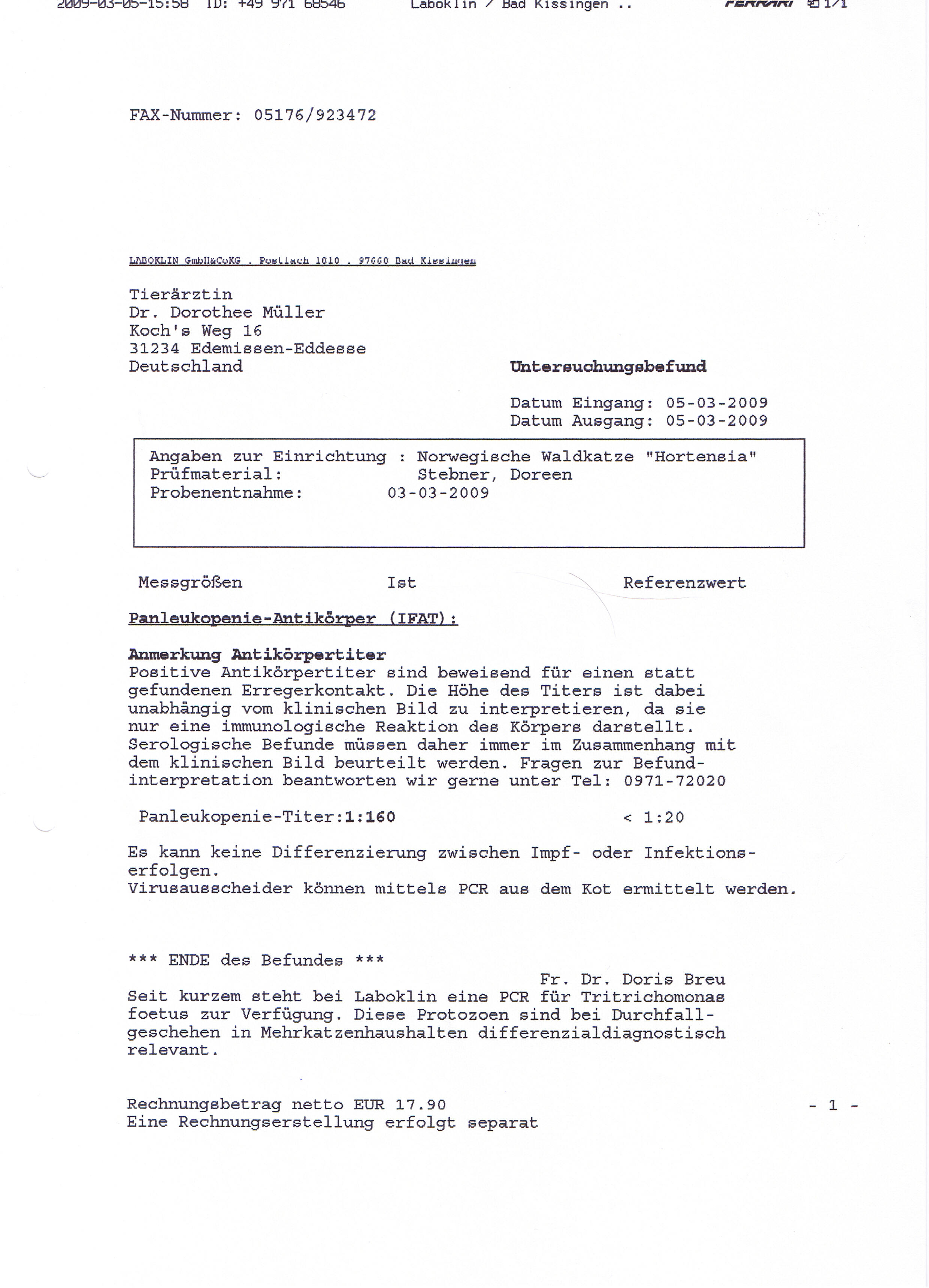 aktueller Befund vom 25.05.2009 ( Sammelkotprobe )